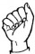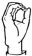 На ћирилици написано РАДОВАН КЛЕПАЦ састоји се из 13 слова [?]. Исписано ћириличном једноручном азбуком за глувонеме:
